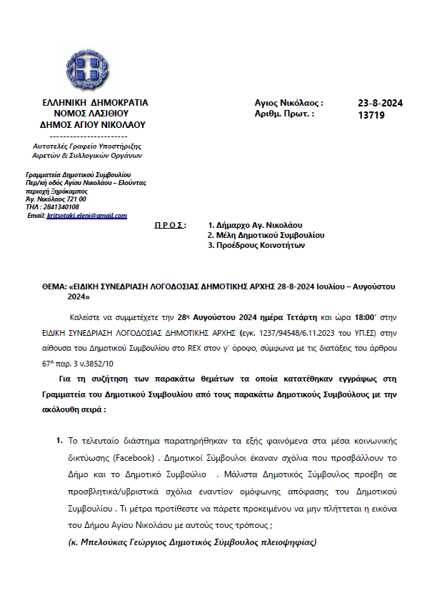 Συνεδρίαση Λογοδοσίας Δημοτικής Αρχής 28/08/2024