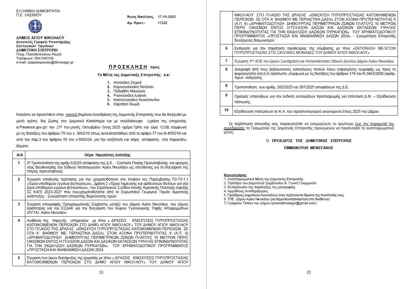 Συνεδρίαση Δημοτικής Επιτροπής Δήμου Αγίου Νικολάου. Τρίτη 21-10-2025 και ώρα 12:00
