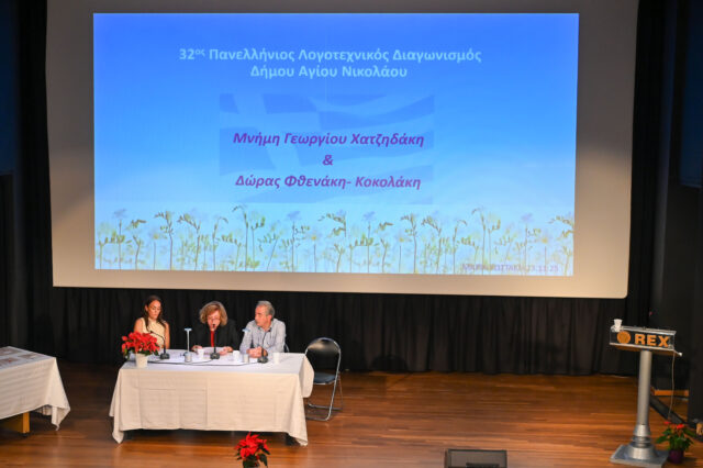 Στον χαιρετισμό του ο Δήμαρχος Αγίου Νικολάου Μανώλης Μενεγάκης, καλωσορίζοντας κοινό και βραβευθέντες ανέφερε ότι ο 32ος Πανελλήνιος Διαγωνισμός Λογοτεχνίας του Δήμου Αγίου Νικολάου, επανέρχεται φέτος δυναμικά, επιβεβαιώνοντας πως ο τόπος μας διαθέτει μια σταθερή και βαθιά ριζωμένη παράδοση στη λογοτεχνία και στις τέχνες γενικότερα.