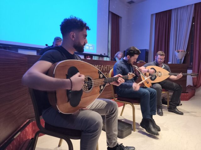 Την εκδήλωση πλαισίωσαν καλλιτεχνικά ο Ζαχαρίας Επιτροπάκης (λύρα), ο Δημήτρης Κοκολάκης (λαούτο) και ο Παύλος Κουτουλάκης (λαούτο).