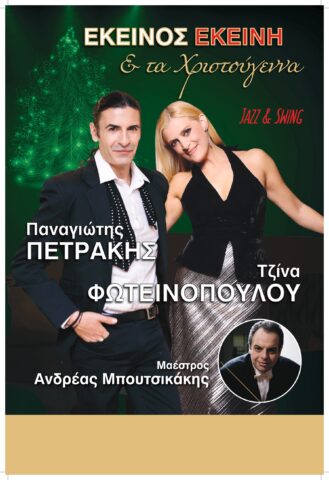 Ο χαρισματικός ερμηνευτής Παναγιώτης Πετράκης και η λαμπερή καλλιτέχνιδα Τζίνα Φωτεινοπούλου παρουσιάζουν μια ξεχωριστή χριστουγεννιάτικη συναυλία γεμάτη swing, jazz και αγαπημένες γιορτινές μελωδίες.