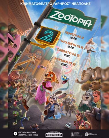 Ηλεκτρονική διάθεση εισιτηρίων : https://www.ticketbox.gr/ekdilosi/zootopia-2-driros/