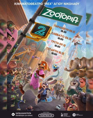 Ηλεκτρονική διάθεση εισιτηρίων : https://www.ticketbox.gr/ekdilosi/zootopia-2-rex/