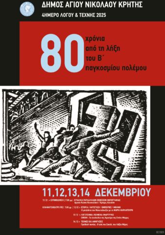 Με αυτές τις φράσεις ο συγγραφέας, ποιητής, δοκιμιογράφος και δημοσιογράφος κ. Παντελής Μπουκάλας, μας προσκαλεί στο “Τετραήμερο Λόγου και Τέχνης” που θα πραγματοποιηθεί στις 11, 12, 13 & 14 Δεκεμβρίου στον Άγιο Νικόλαο Κρήτης, με αφορμή τη φετινή συμπλήρωση 80 χρόνων από τη λήξη του Β΄ Παγκοσμίου Πολέμου.