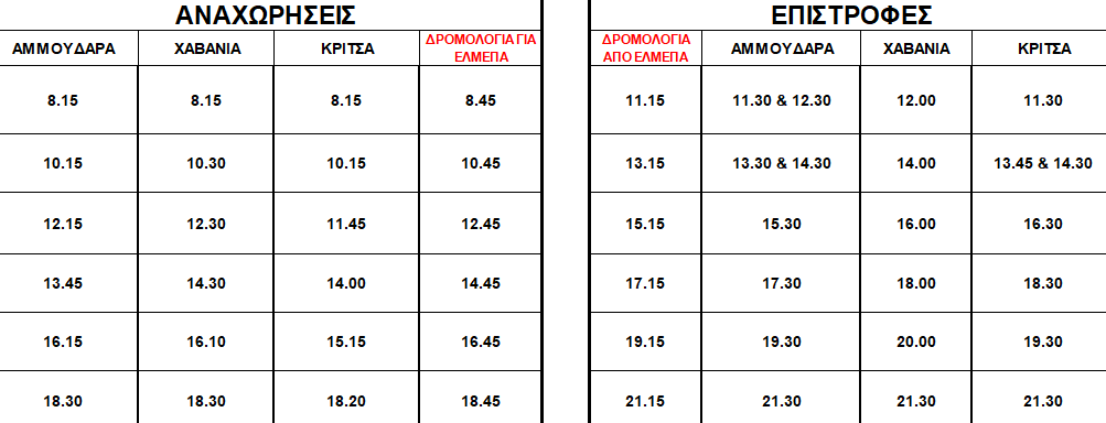 - Με έξι (6) δρομολόγια την ημέρα την περιμετρική ζώνη: Αμμουδάρα – Ρούσα Λίμνη – Μαρδάτι – Κριτσά – Δημοτικό Περιφερειακό δρόμο Αγίου Νικολάου – Ελούντα και Χαβάνια.