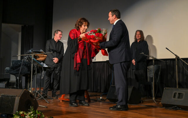 Κορύφωση της βραδιάς αποτέλεσε η εμβληματική παρουσία της σπουδαίας ερμηνεύτριας Μαρίας Φαραντούρη, η οποία ερμήνευσε επί σκηνής τη «Μπαλάντα του Μαουτχάουζεν», σε μουσική Μίκη Θεοδωράκη και ποίηση Ιάκωβου Καμπανέλλη. Η ερμηνεία της, φορτισμένη με ιστορικό και συναισθηματικό βάρος, καθήλωσε το κοινό και αποτέλεσε μια βαθιά βιωματική στιγμή μνήμης, τιμής και καθολικού ανθρωπιστικού μηνύματος.