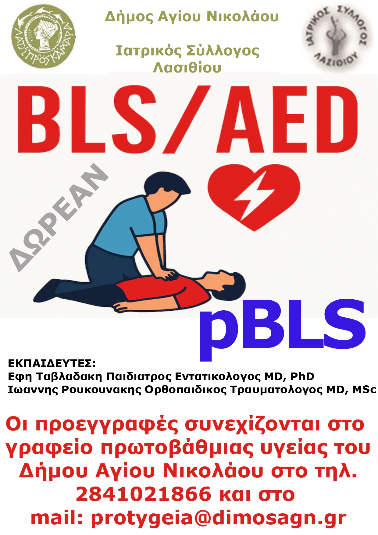 Συνεχίζονται τον Ιανουάριο του 2026, οι ενημερωτικές συναντήσεις που διοργανώνει το Γραφείο Πρωτοβάθμιας Υγείας του Τμήματος Κοινωνικής Προστασίας & Παιδείας Δήμου Αγίου Νικολάου σε συνεργασία με τον Ιατρικό Σύλλογο Λασιθίου στο πλαίσιο των δράσεων προαγωγής της υγείας και ενίσχυσης της ετοιμότητας των πολιτών σε καταστάσεις επείγουσας ανάγκης.