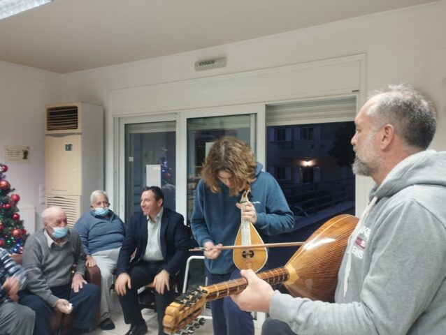 Οι φιλοξενούμενοι και το προσωπικό της Μονάδας είχαν την ευκαιρία να ακούσουν τα παραδοσιακά Χριστουγεννιάτικα κάλαντα από τον Δημήτρη Μπρόκο και τον γιο του Μανώλη – μαθητή του Μουσικού Σχολείου Λασιθίου, ενώ σιγοτραγούδησαν με τους μουσικούς σκοπούς της Ανατολικής Κρήτης,