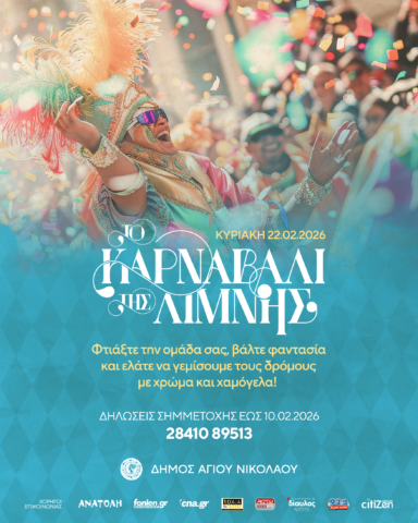 16 ημέρες απομένουν μέχρι την μεγάλη καρναβαλική παρέλαση στον Άγιο Νικόλαο που θα πραγματοποιηθεί την Κυριακή 22 Φεβρουαρίου 2026.