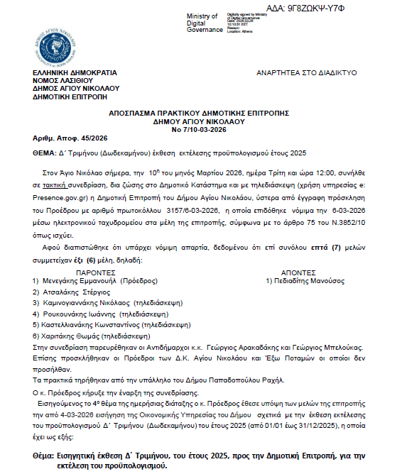 Δ΄ Τριμήνου (Δωδεκαμήνου) έκθεση εκτέλεσης προϋπολογισμού έτους 2025