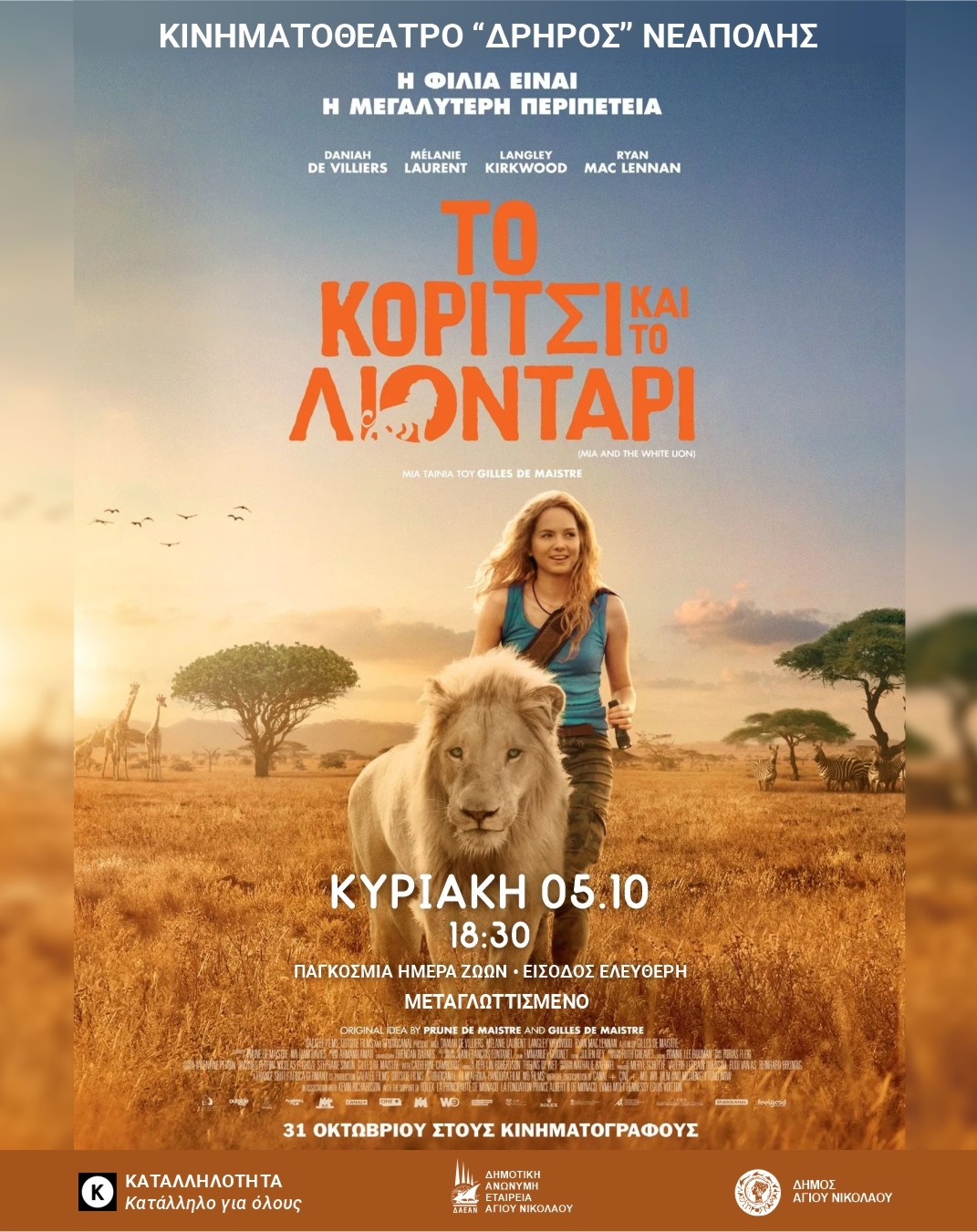 Κινηματοθέατρο REX Λασθένους και Σφακιανάκη, Αγιος Νικόλαος, Λασιθίου, ΕλλάδαΗ ζωή της 10χρονης Μία αναστατώνεται όταν η οικογένειά της αποφασίζει να αφήσει το Λονδίνο και να ζήσει σε μια φάρμα με λιοντάρια στην Αφρική. Όταν γεννιέται ένα όμορφο λευκό